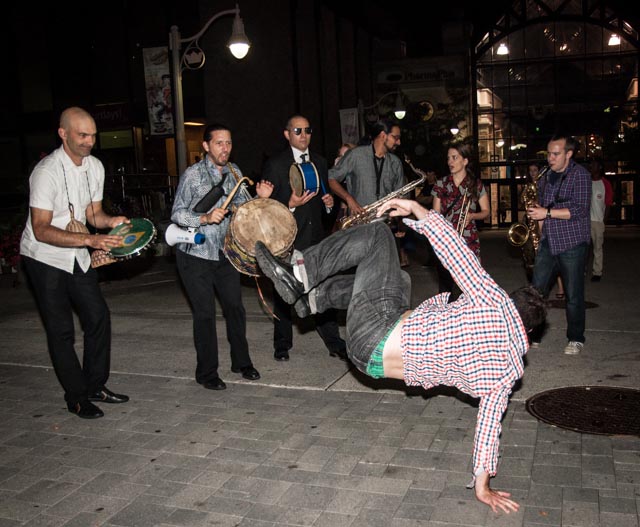 This past weekend, downtown Guelph came alive with music. The Jazz Festival was in full swing as I pulled into the square around 11pm Saturday night. The energy was electric when entering Guelph’s core. Street performers dazzled onlookers with their talents and vitality and fans couldn’t help but join in with the music. Here, I photographed one audience member who began to dance, impressing both fans and musicians. Check out this video of the music and street dancing.