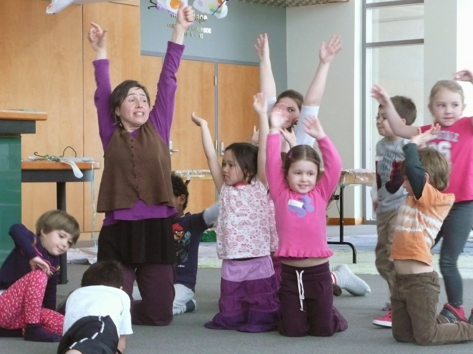 | Left: The Blue Group learned shaping in contemporary dance with Jasmin McGraw. Right: They even got to use balloons to help them through the exploration of different body postures! |